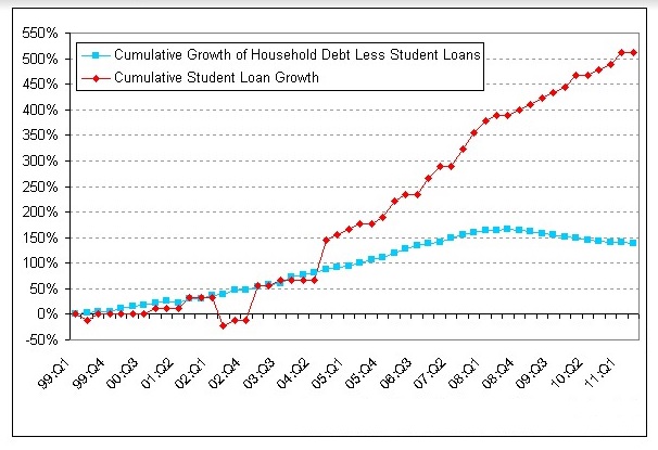 Comparison of Growth of Student Debt With Household Debt