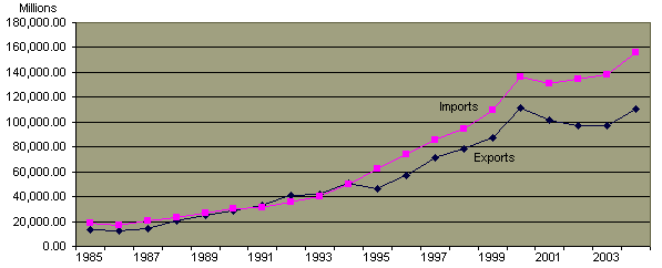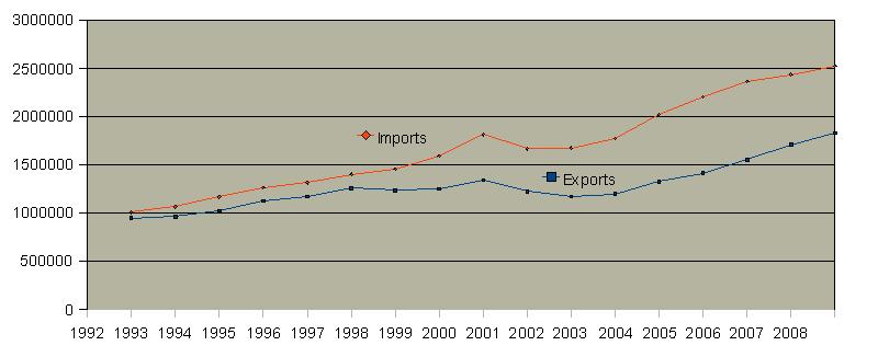 Hasn't expanded U.S. trade led to a substantial increase in the trade deficit which undermines the U.S. economy?