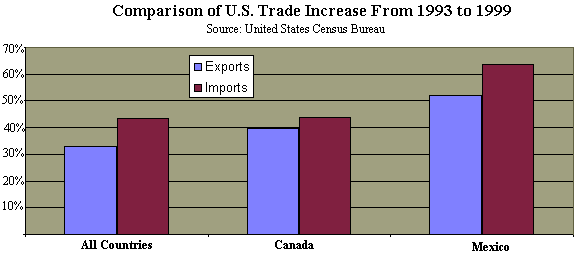 As a result of NAFTA, U.S. trade with Mexico has substantially increased as tariff barriers have been lowered. Trade with Canada, the major U.S. trading partner, kept pace with the overall trade increase and trade with Mexico far outpaced the overall substantial growth in U.S. foreign trade. Mexico, Canada and China are by far the leading U.S. trading partners and together account for about 40% of total U.S. international trade. The majority of all Mexican and Canadian imports are from the U.S. As many remaining tariff barriers are removed under the NAFTA schedule, indications are that trade with Mexico will continue to grow substantially.
