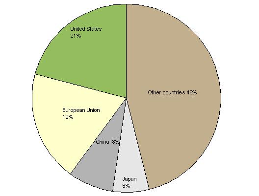 Many nations in Europe and some in the Middle East and East Asia have significant aid programs. In 2006, the United States was the largest donor although much of the assistance was directed at Iraq. But even with the massive amount of development assistancein the wake of the Iraq war, the U.S. fell significantly short of the U.N. goal set for donor nations at .07% of the GNI. Instead, only five smaller European Nations presently exceed this standard. The nations who receive aid are primarily in sub-Saharan Africa. In addition, countries in Southeast Asia and Latin America are recipients. Overall, as a percentage of the global GDP, the level development assistance has actually decreased.