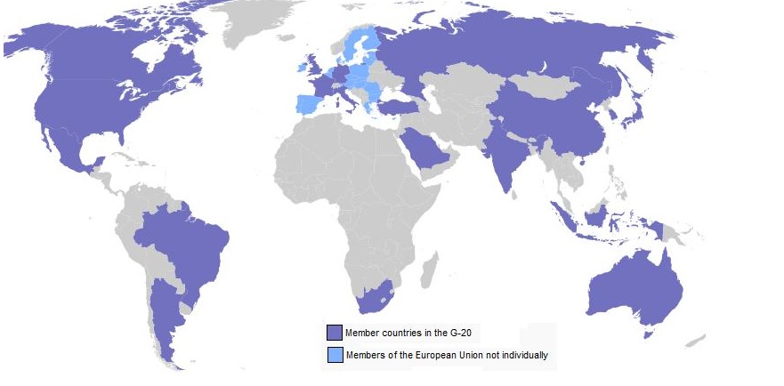 - The "Group of Twenty" (G-20) is a group of finance ministers and central bank governors from 20 economies: 19 countries, plus the European Union (EU).