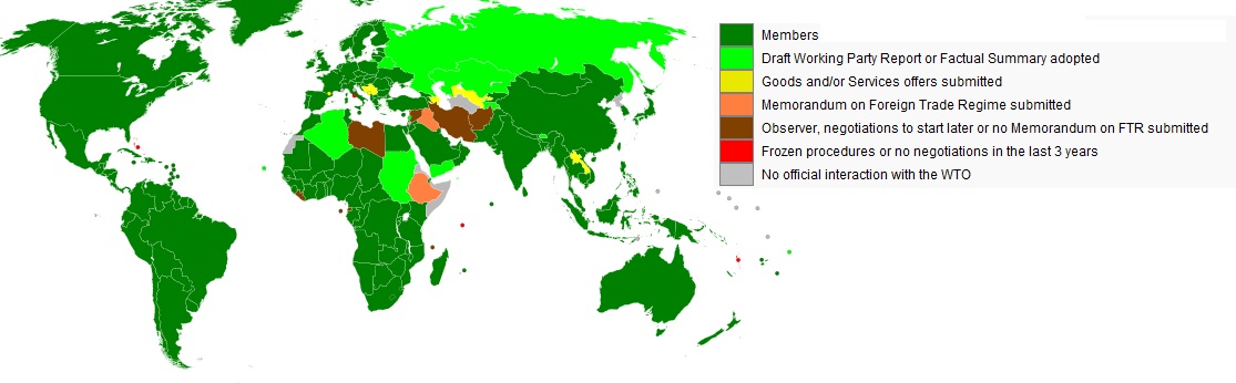 - World Trade Organization (WTO) The WTO was established in 1995 as a successor to GATT (General Agreement on Treaties and Tariffs). The treaty now includes most nations. The notable exceptions are former members of the Soviet Union. These nations have observer status.